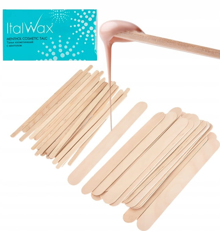 Jednorazowe drewniane szpatułki do nakładania wosku podczas depilacji.