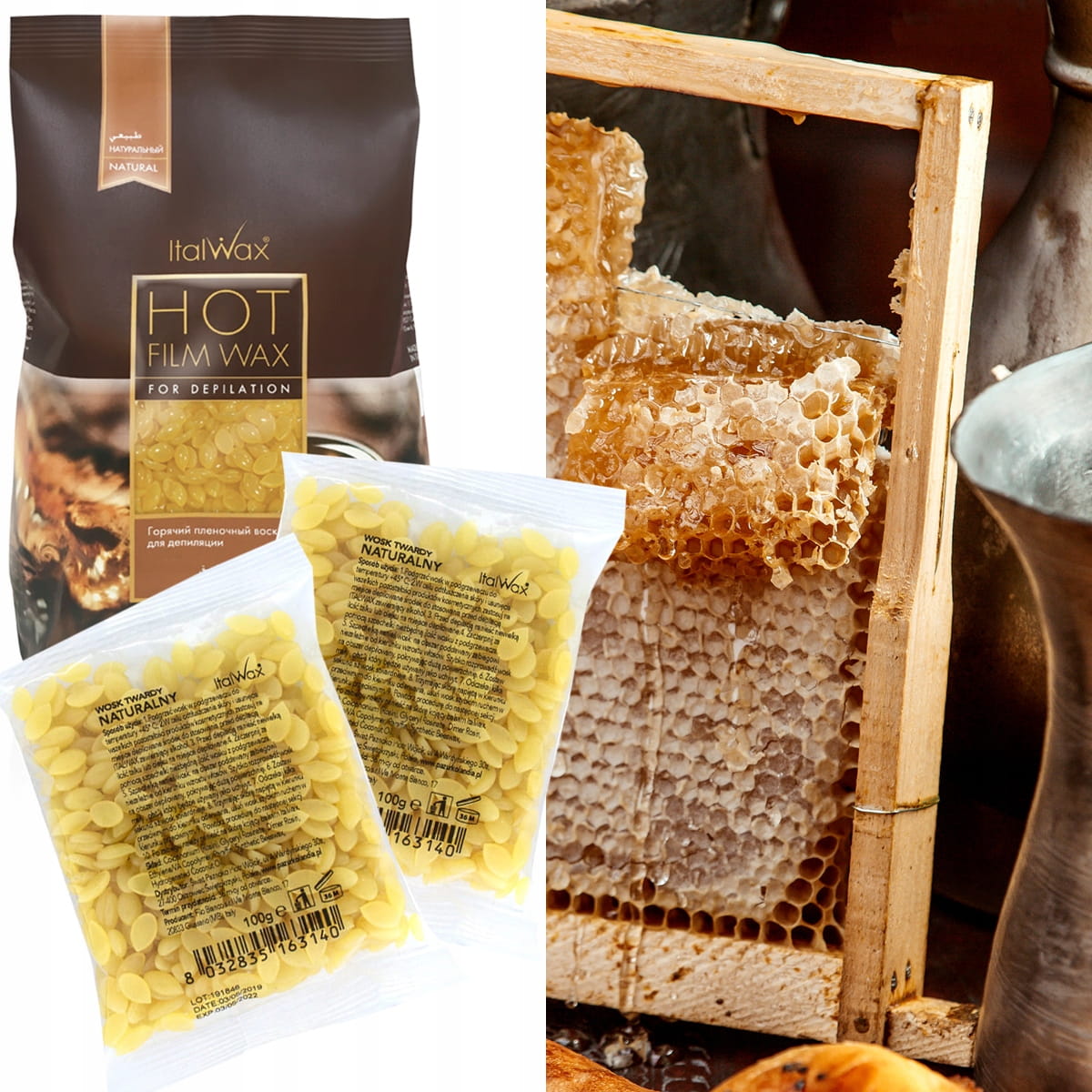 5x Wosk twardy do depilacji ItalWax Hot Film Wax Natural naturalny 100g do podgrzewacza