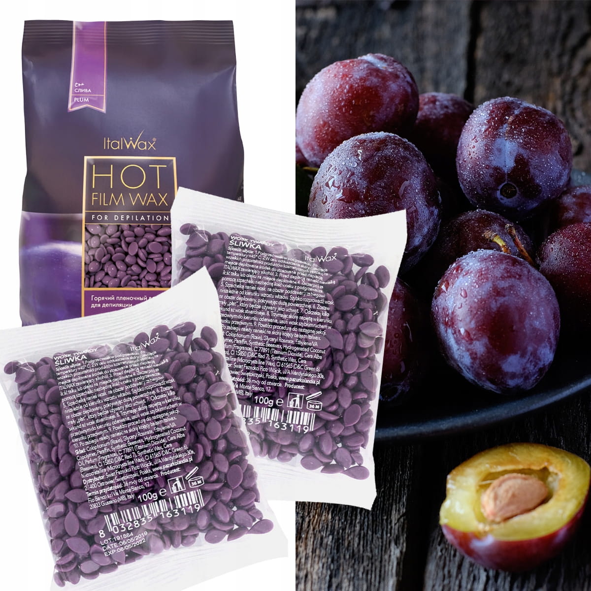 ItalWax Plum Film Wax - niskotemperaturowy wosk w dropsach do depilacji bezpaskowej 100g