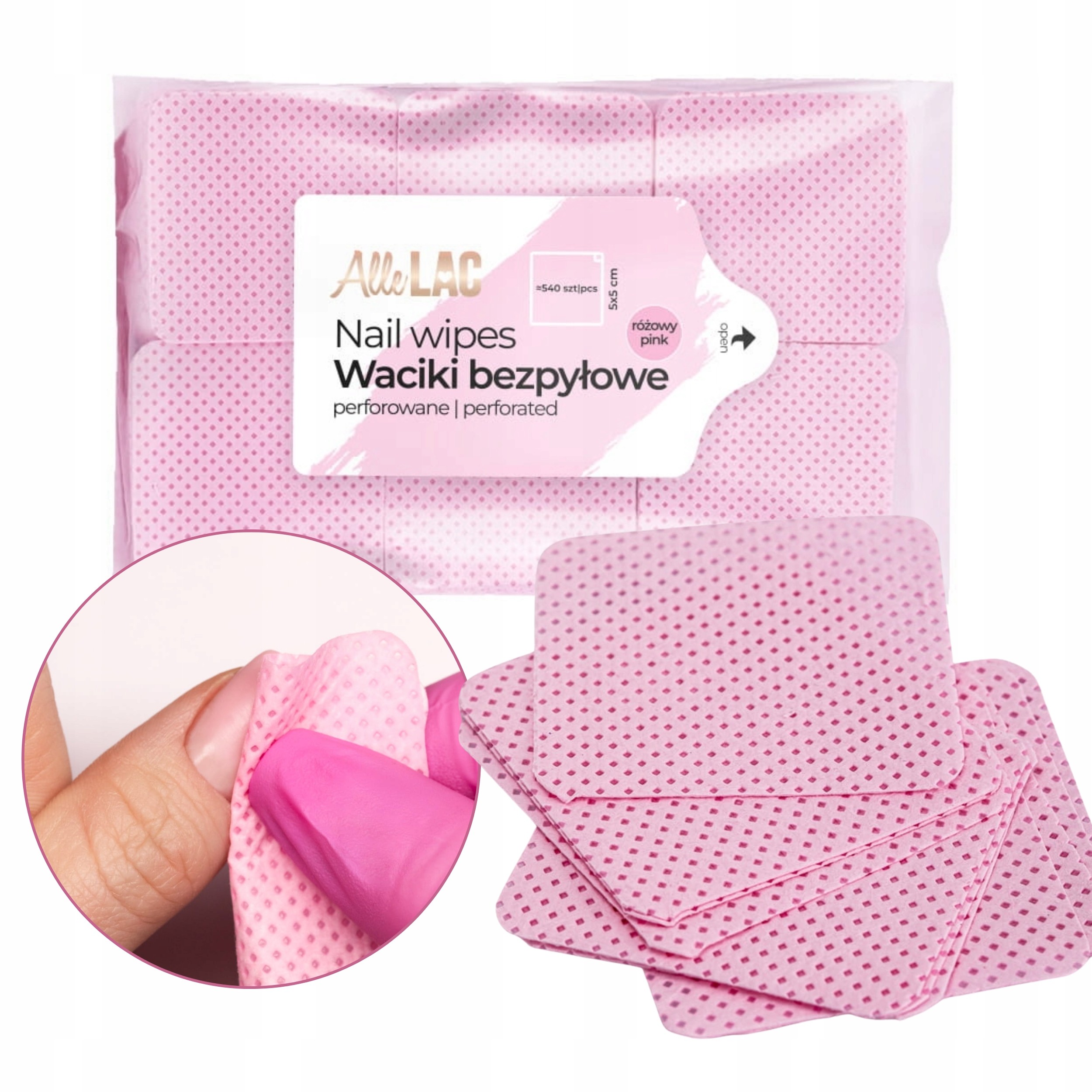 AlleLac Waciki kosmetyczne bezpyłowe perforowane 5x5cm różowe540 sztuk