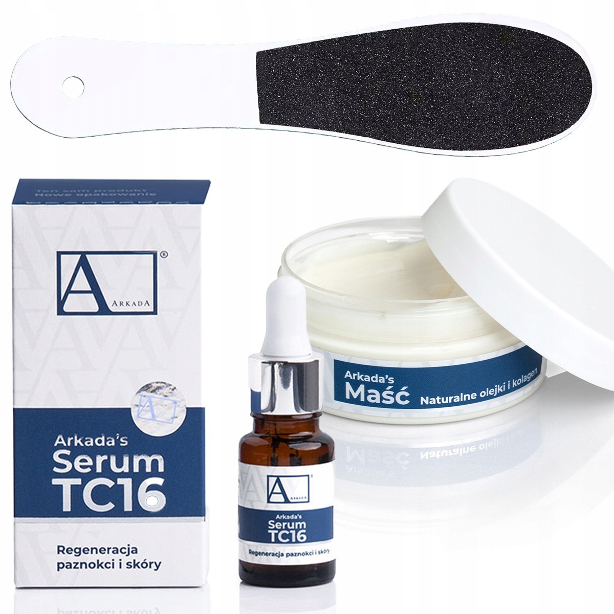 Arkada Zestaw: Serum kolagenowe TC16 11ml 1 sztuka + maść na popękaną skórę stóp 70g 1 sztuka + tarka do stóp dwustronna 100/180