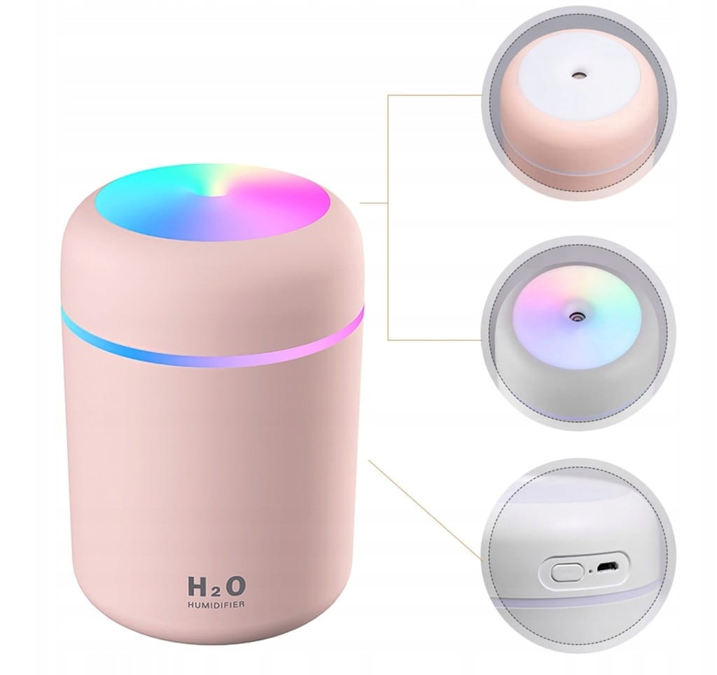 - Podświetlany LED zbiornik wody (z możliwością całkowitego wyłączenia), pełniący funkcję lampki nocnej.