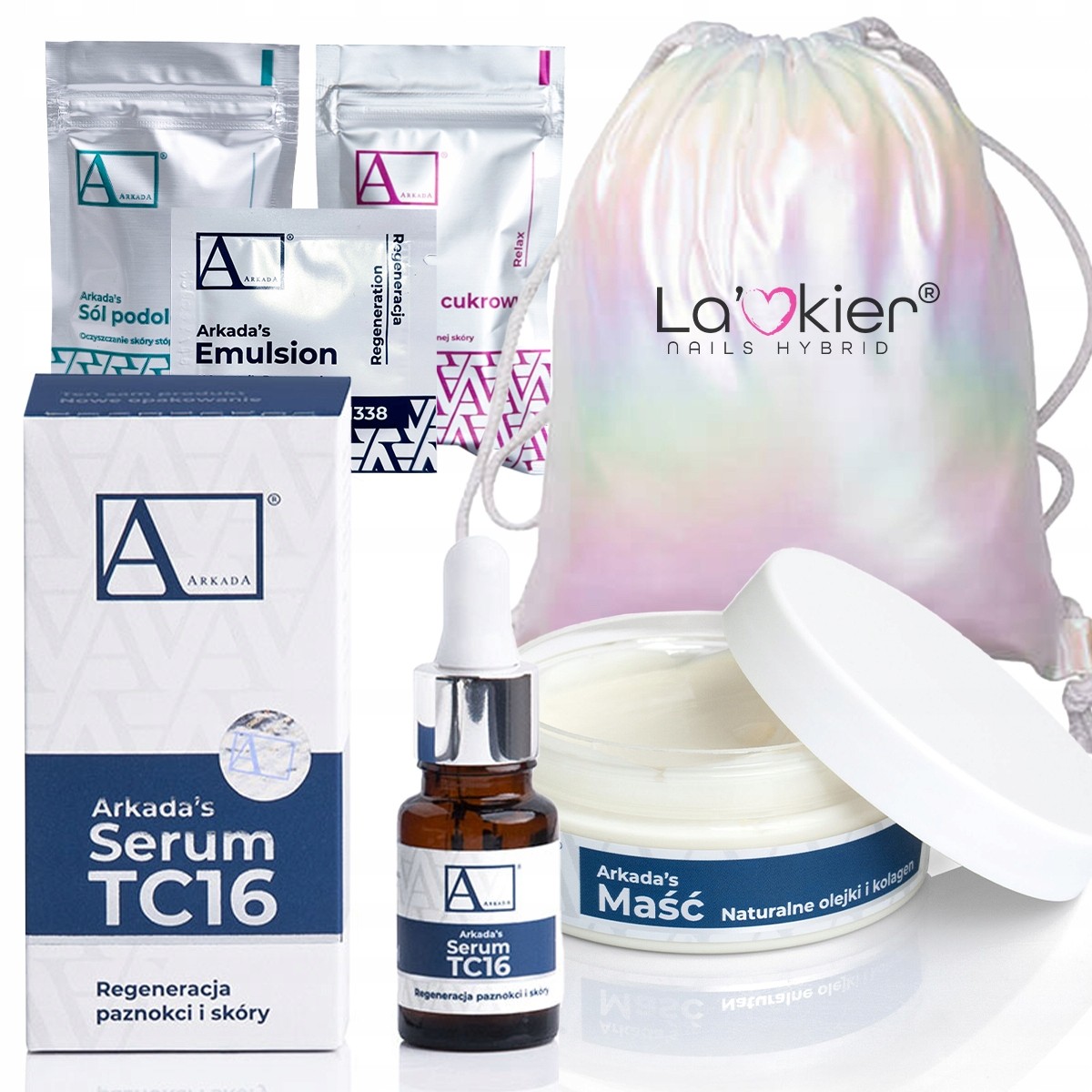 Arkada Zestaw: Serum kolagenowe TC16 11ml + maść regenerująca na popękaną skórę stóp 70g + 3 próbki + worek holo