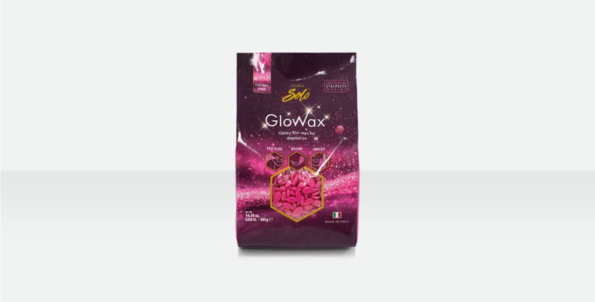 Cherry Pink Glowax - to piękny brokatowy wosk, idealny do depilacji twarzy. Ten syntetyczny wosk polimerowy poziomu Premium jest przeznaczony do depilacji delikatnych obszarów: