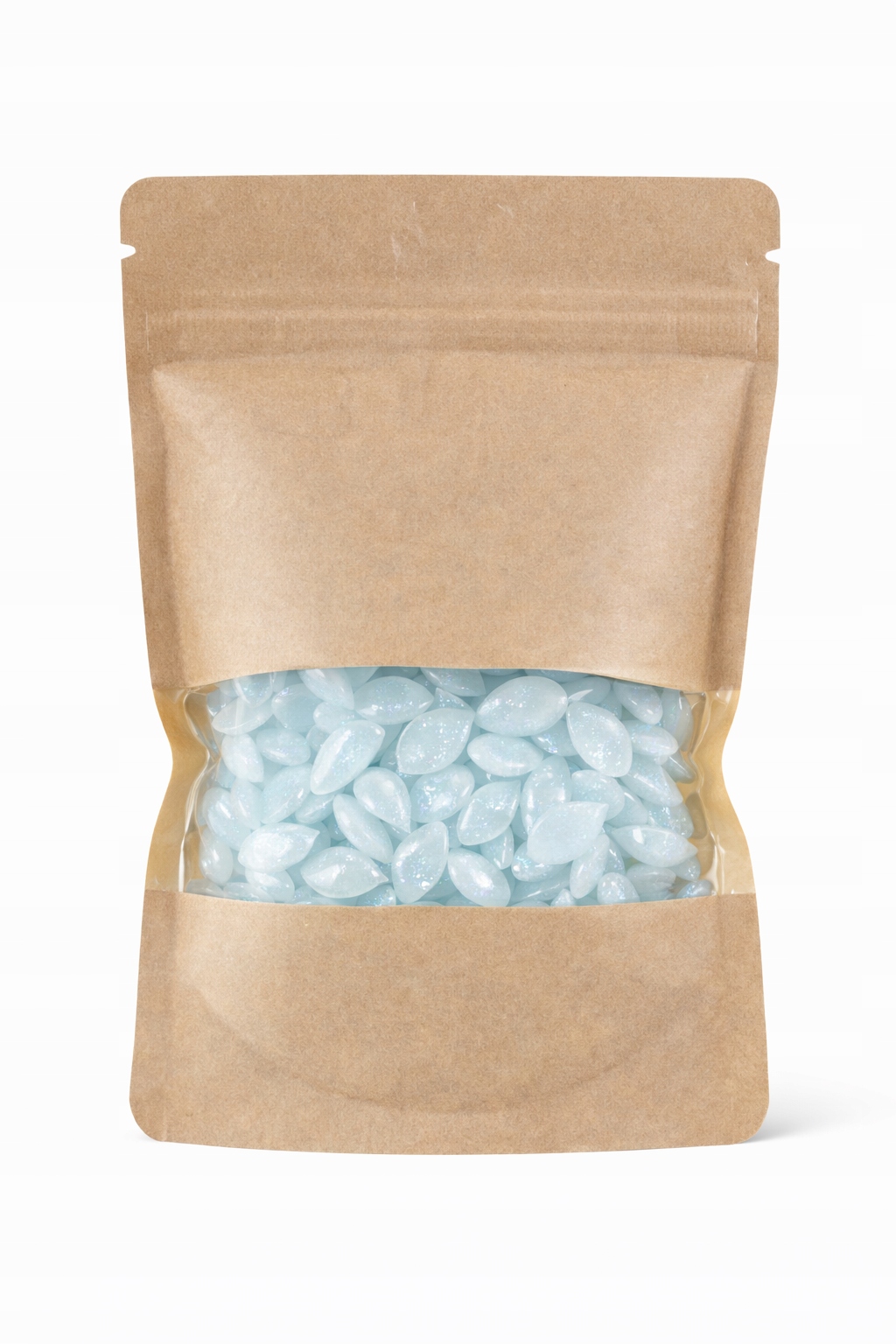 - Czysty wosk syntetyczny z subtelnym, niebieskim połyskiem, wzbogacony delikatnym zapachem przywodzącym na myśl czystość i lekkość świeżo spadłego śniegu.