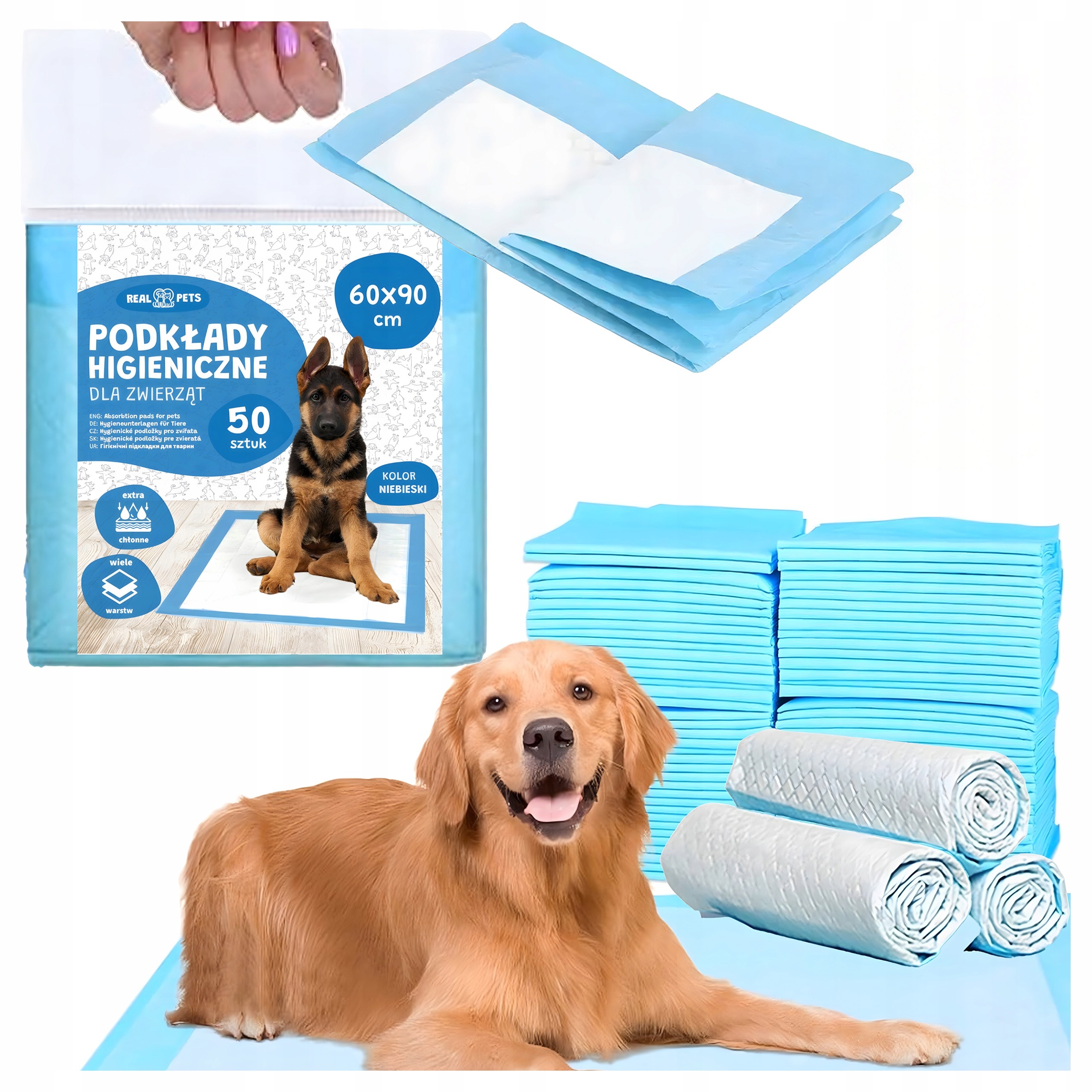 - ✓ 50 sztuk w opakowaniu – tygodnie spokoju bez dokupowania – duże opakowanie to niższy koszt jednostkowy na jedną matę i rzadsze zamówienia, co docenią właściciele dużych psów o intensywnym zużyciu.