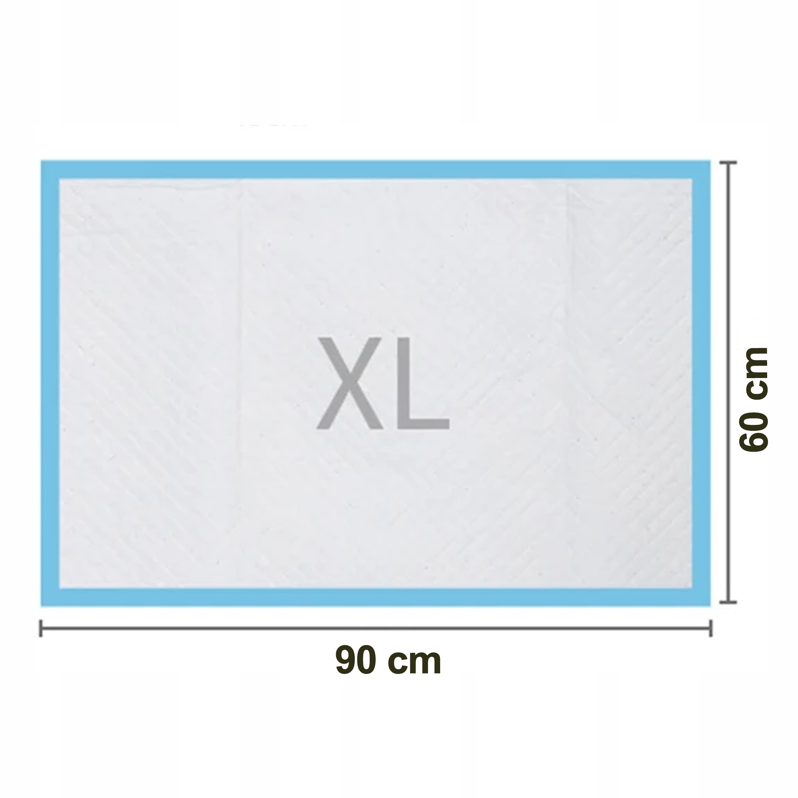 Maty higieniczne XL 90x60 cm mają białą warstwę wierzchnią (sucha włóknina) i niebieski nieprzemakalny spód (folia zabezpieczająca). Rzeczywisty odcień niebieskiego może różnić się nieznacznie od prezentowanego na zdjęciach produktowych w zależności od ustawień monitora i oświetlenia – różnica ta nie wpływa na właściwości użytkowe produktu.