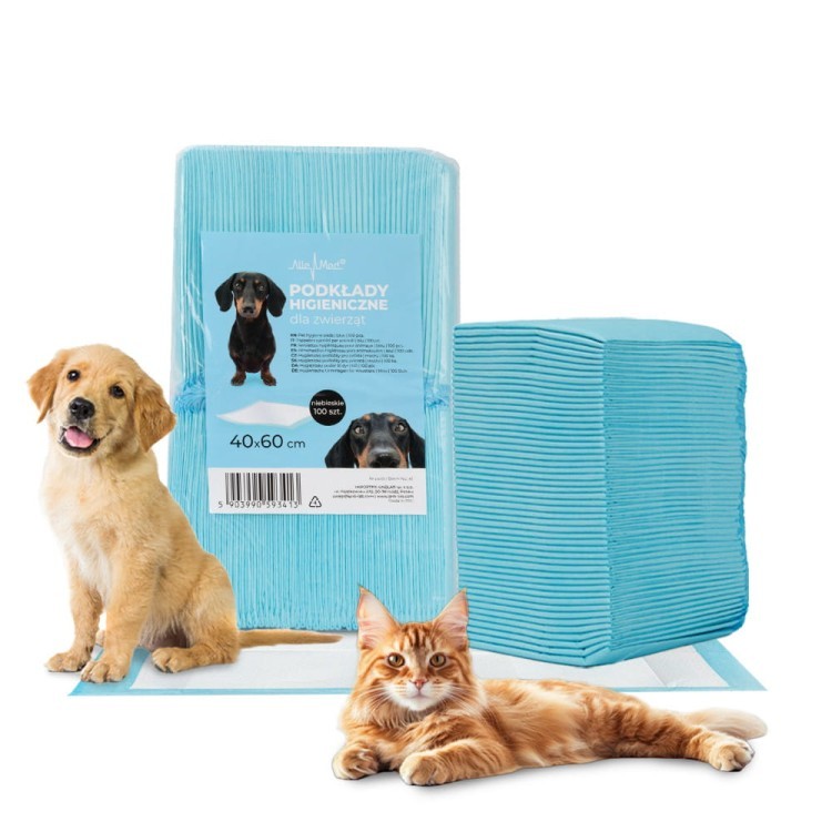 Tak – pomimo nazwy sugerującej zastosowanie dla psów, podkłady AlleMed 40x60 cm są w pełni odpowiednie dla kotów, królików, świnek morskich, szczurów i innych małych zwierząt domowych. Sprawdzają się jako podkład pod kuwetę (wydłużają żywotność ściółki), jako wyłożenie dna klatki lub transportera oraz jako mata higieniczna dla kociąt uczących się korzystania z toalety.