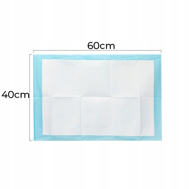 Wymiar 40 x 60 cm jest optymalny dla małych i średnich ras psów oraz dla wszystkich kotów, królików i gryzoni. Duża powierzchnia daje zwierzęciu komfort i swobodę ruchów podczas załatwiania potrzeb, co jest szczególnie ważne przy nauce czystości u szczeniąt i kociąt – im większa mata, tym mniejsze ryzyko pudła. Dla większych ras ten rozmiar świetnie sprawdza się jako mata w transporterze lub przy misce z wodą.