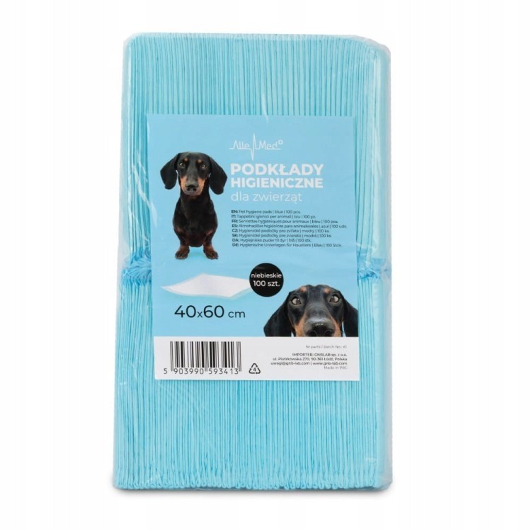 Podkłady higieniczne dla psa i kota AlleMed 40x60 cm 100 szt nieprzemakalne niebieskie