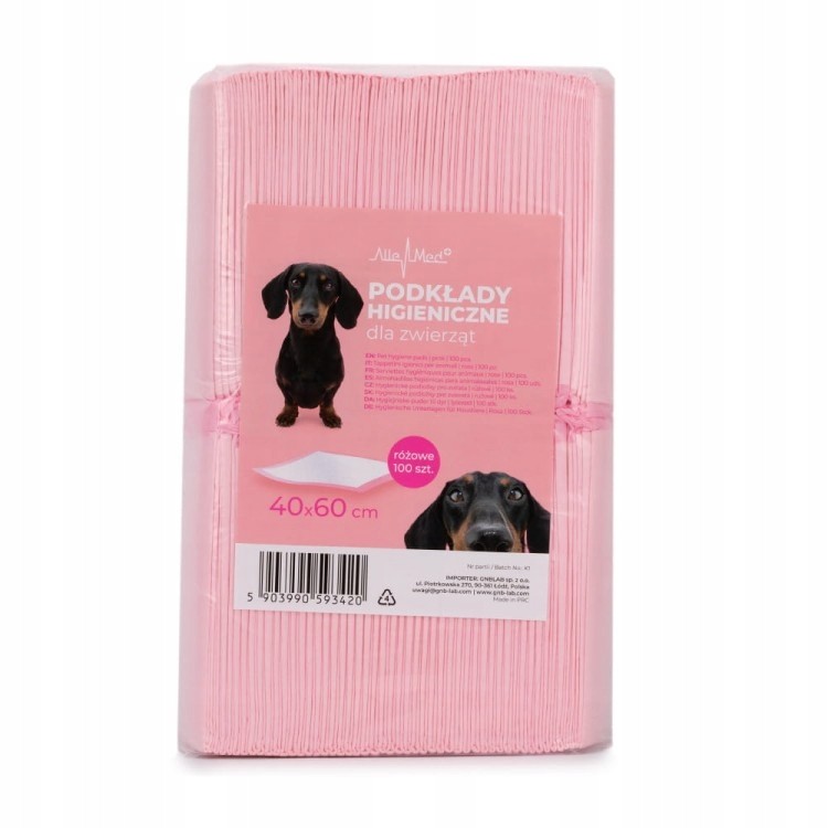 Podkłady higieniczne dla psa i kota AlleMed 40x60 cm 100 szt nieprzemakalne różowe