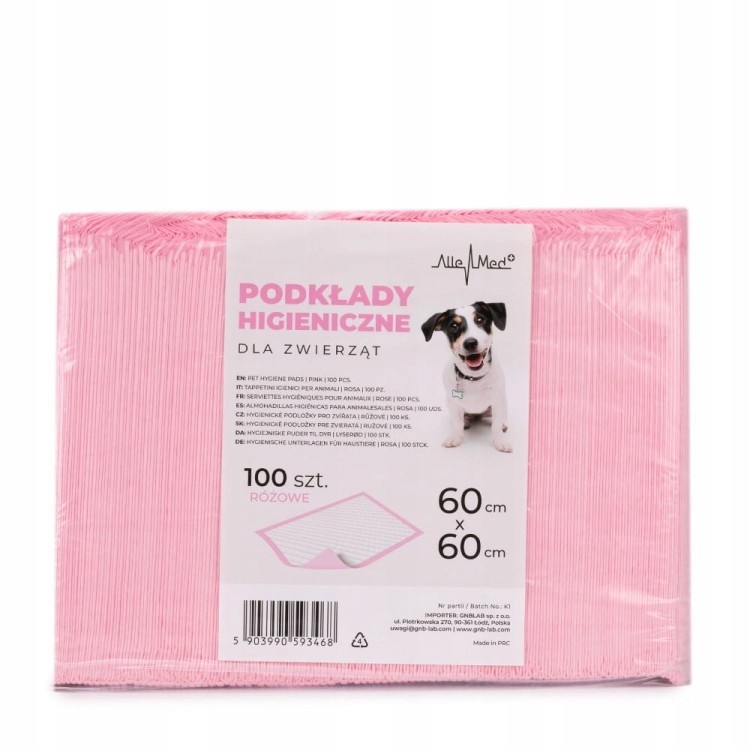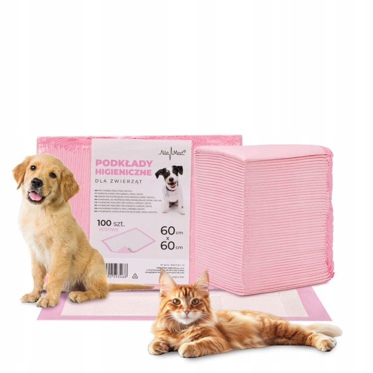 Podkłady higieniczne dla psa i kota AlleMed 60x60 cm 100 szt nieprzemakalne różowe