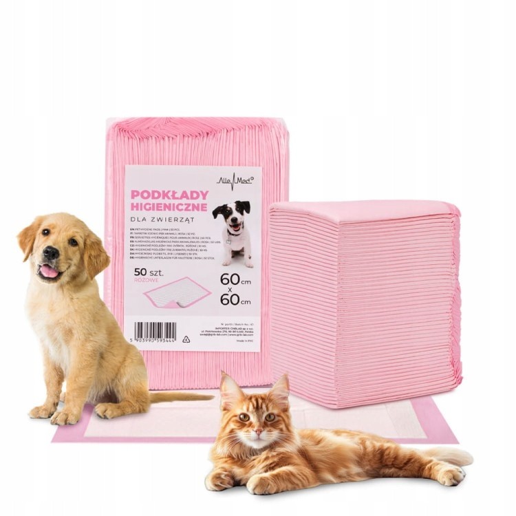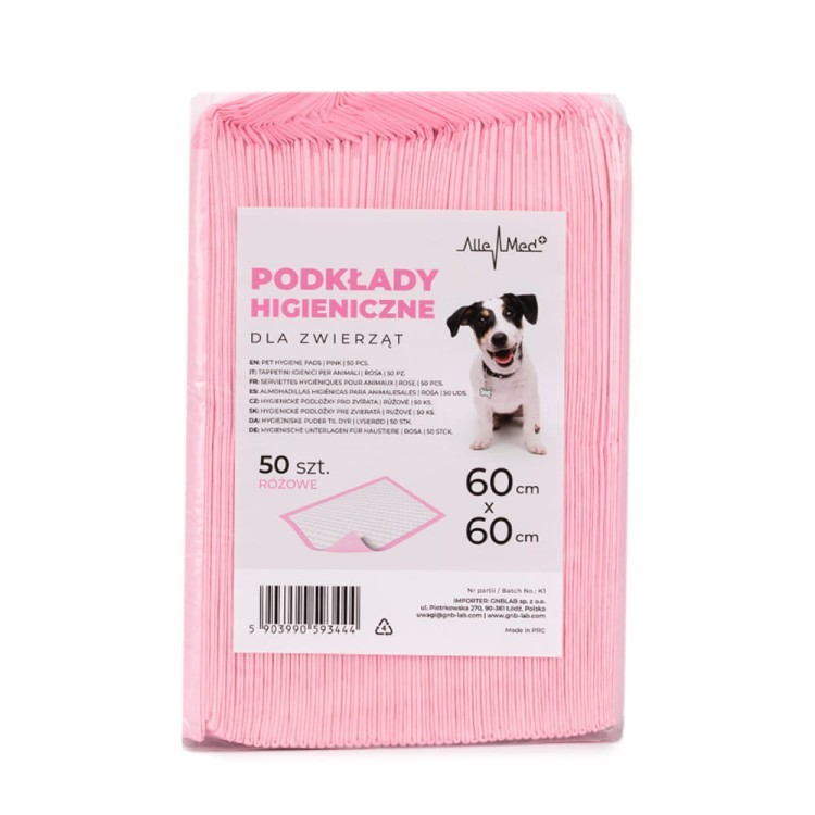 Podkłady higieniczne dla psa i kota AlleMed 60x60 cm 50 szt nieprzemakalne różowe