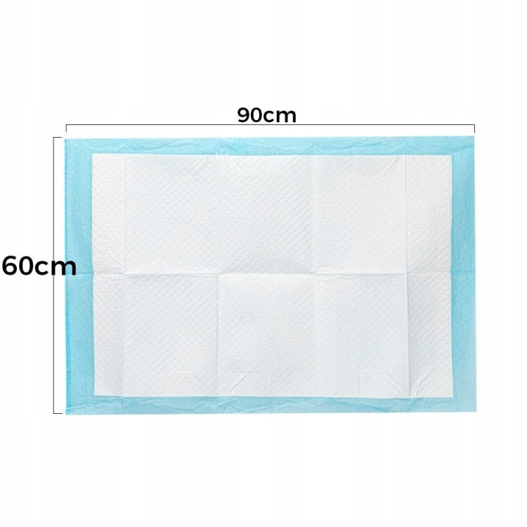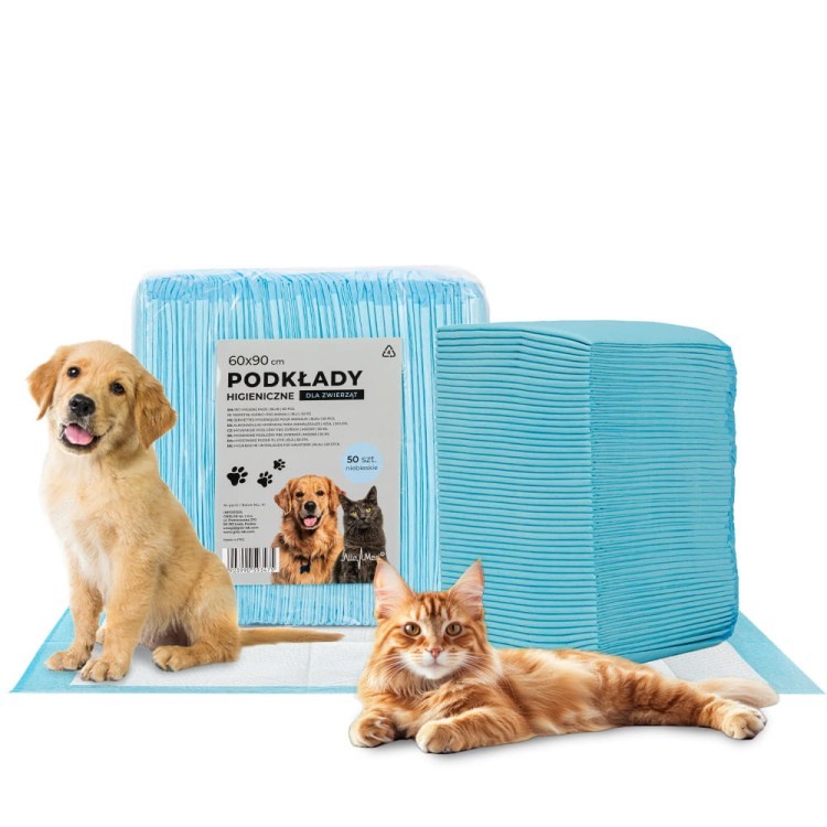 Podkłady higieniczne AlleMed 60x90 cm niebieskie 50 sztuk to wersja o identycznych właściwościach użytkowych co model 100-sztukowy, dostępna w mniejszej ilości – skierowana do właścicieli, którzy dopiero przechodzą z mniejszych formatów (40x60 cm lub 60x60 cm) na duże maty, lub kupują podkłady sezonowo i nie potrzebują zapasu na kilka miesięcy. To także popularny wybór jako uzupełnienie stałego zapasu lub maty podróżne do torby weterynaryjnej i samochodowej.