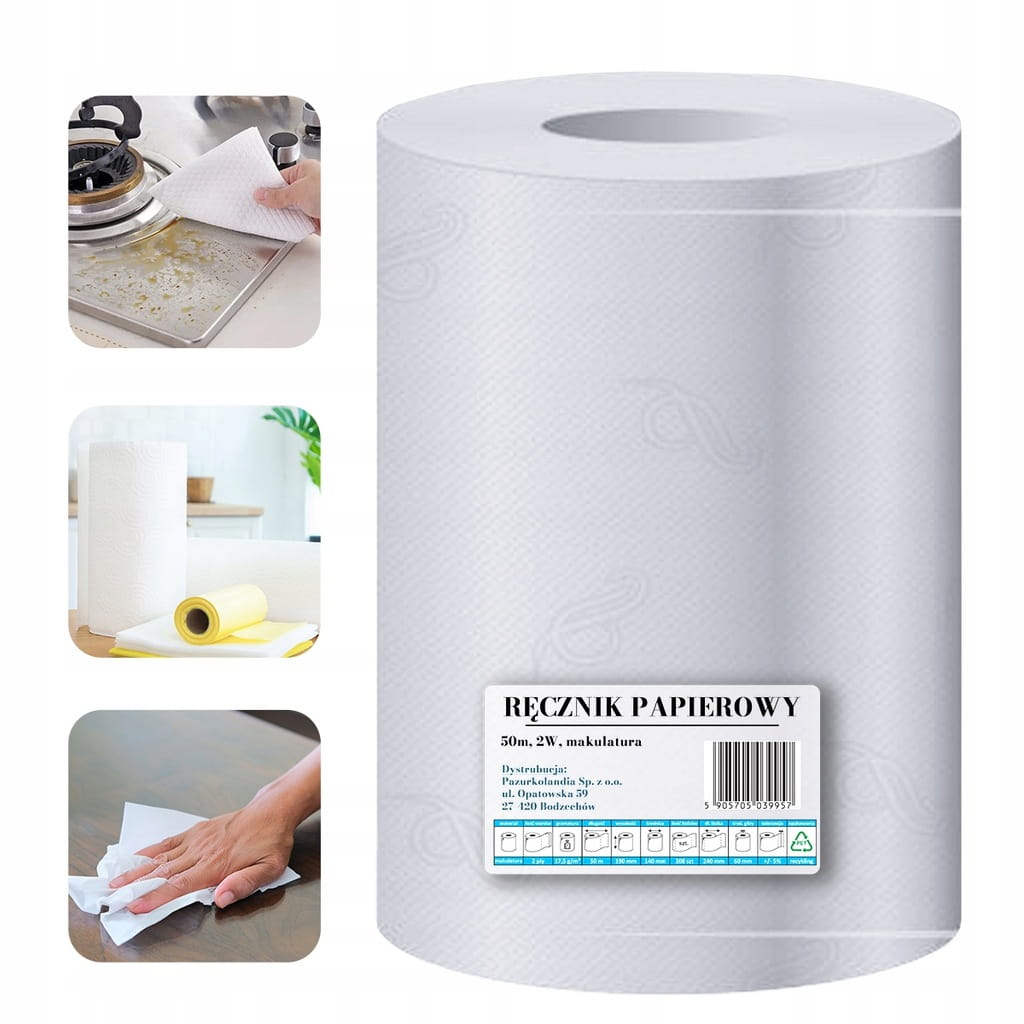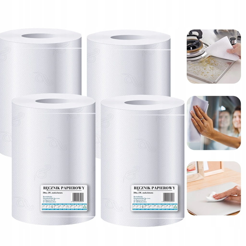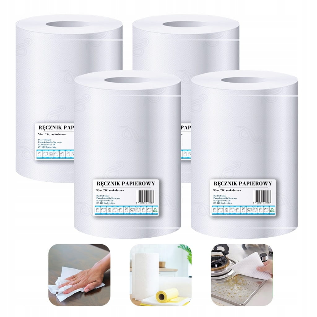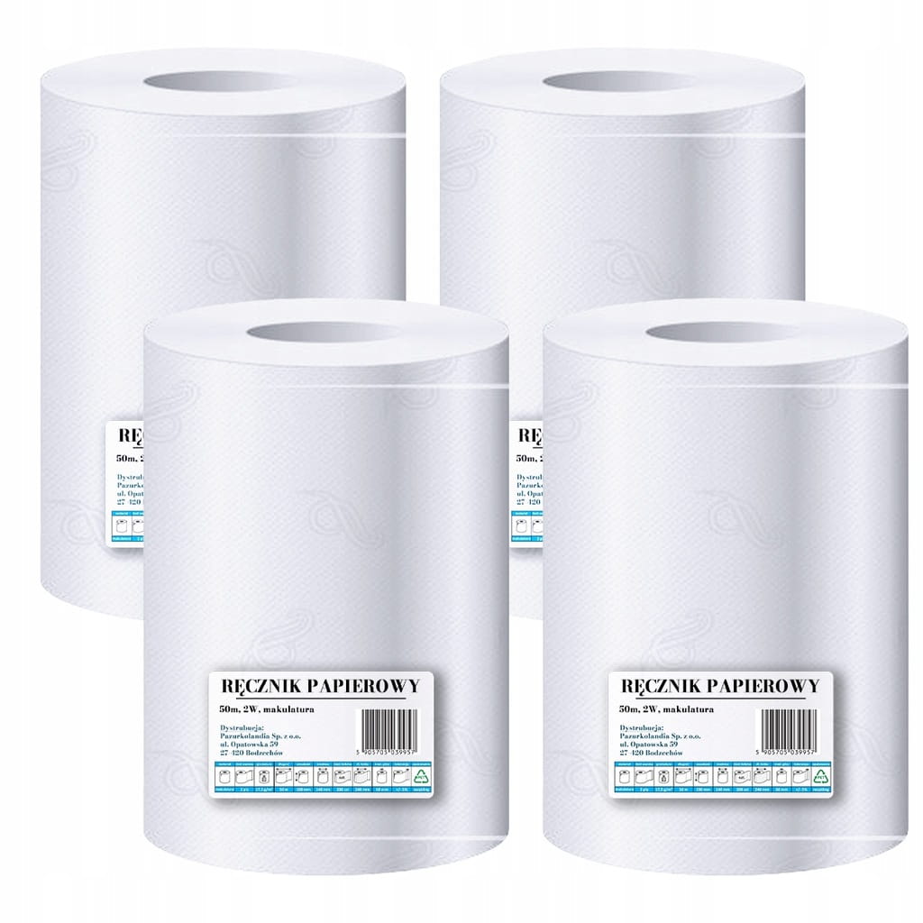 Ręcznik papierowy bielony makulaturowy czyściwo przemysłowe 4 rolki po 50m
