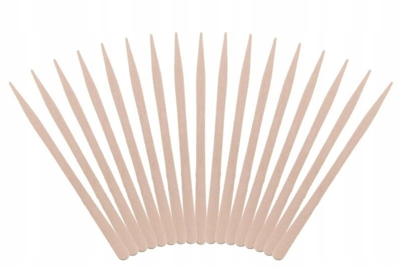 Jednorazowe drewniane szpatułki do nakładania wosku podczas depilacji.