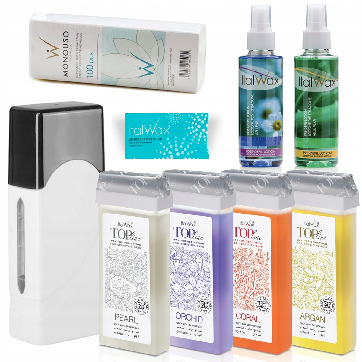 ZESTAW DO DEPILACJI Z WOSKAMI PREMIUM ITALWAX HIPOALERGICZNYMI TOP LINE