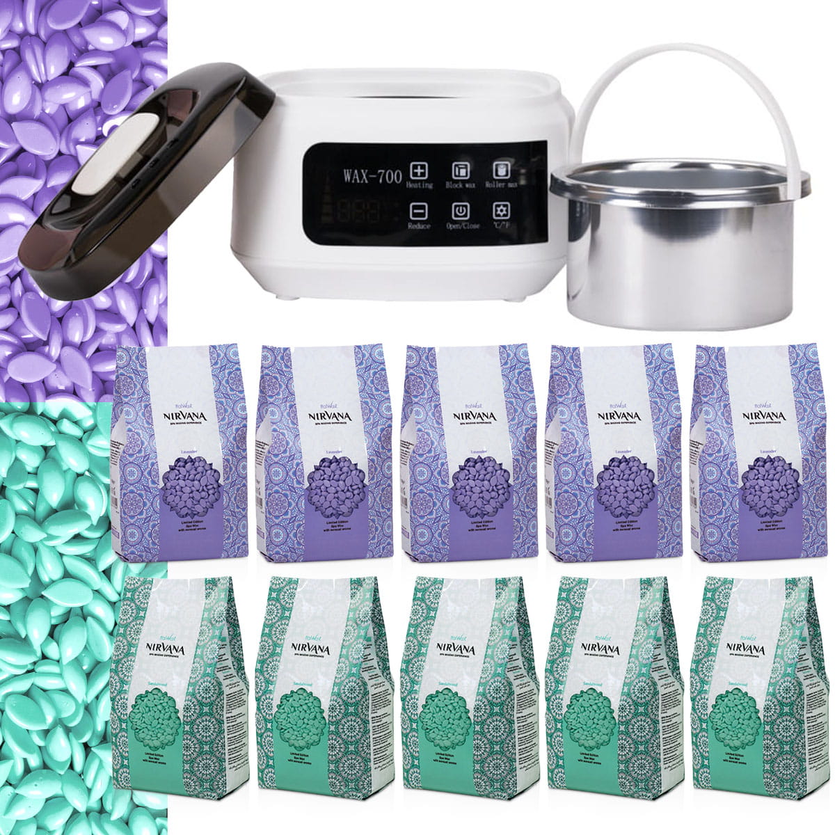 Zestaw XXL do depilacji 10 x wosk w dropsach + podgrzewacz AX-700 120W + akcesoria