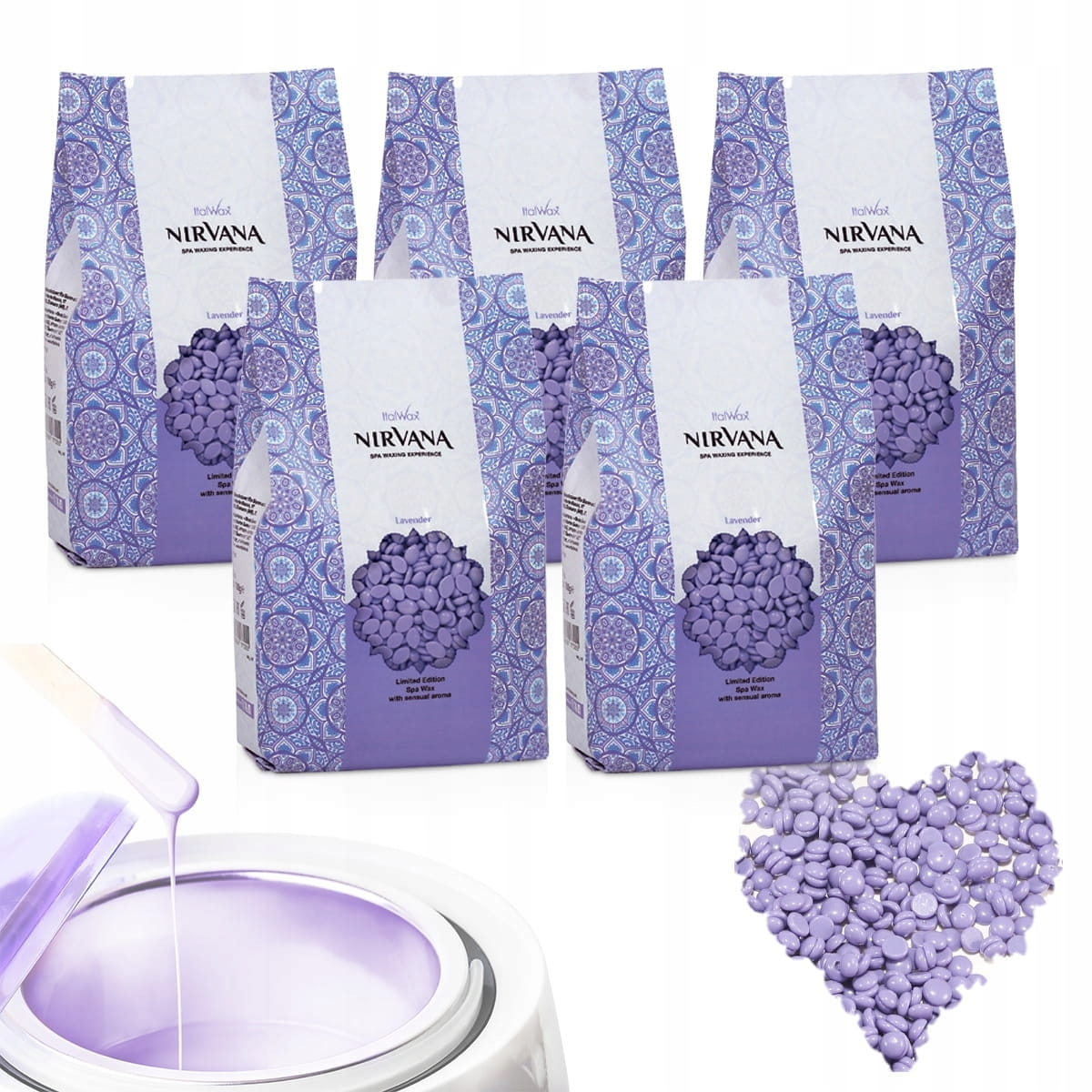 Innowacyjna formuła wosku syntetycznego z olejkiem lawendowym do aromatycznego woskowania SPA.