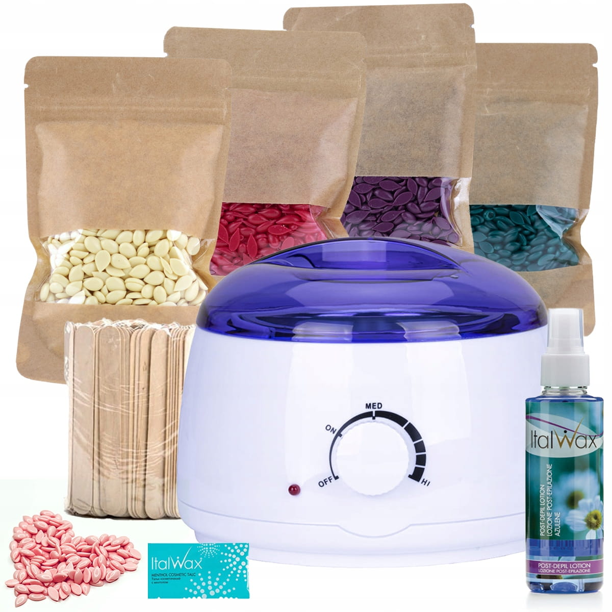 Zestaw do depilacji bezpaskowej 4 x wosk twardy ItalWax + podgrzewacz + kosmetyki