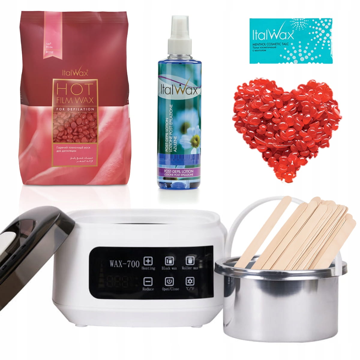 Zestaw do depilacji podgrzewacz AX-700 + wosk twardy Rose 1kg + preparaty + szpatułki
