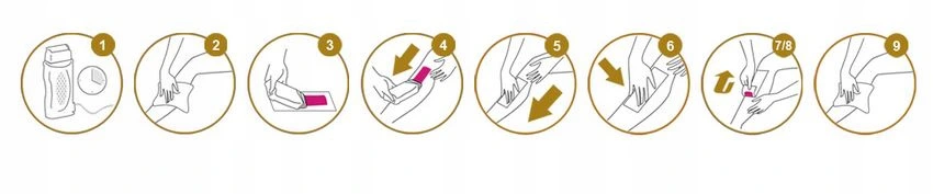 - Dokładnie dociśnij pasek do skóry. Czekamy, aż nałożony wosk wystygnie. Szybkim ruchem w odwrotnym kierunku do wrastania włosków odrywamy pasek fizelinowy wraz z woskiem.