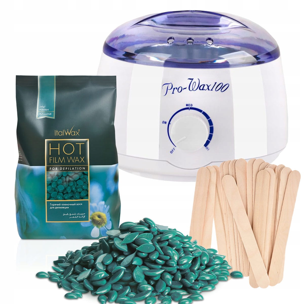 Zestaw do depilacji woskiem w dropsach Azulen 250g + podgrzewacz + szpatułki