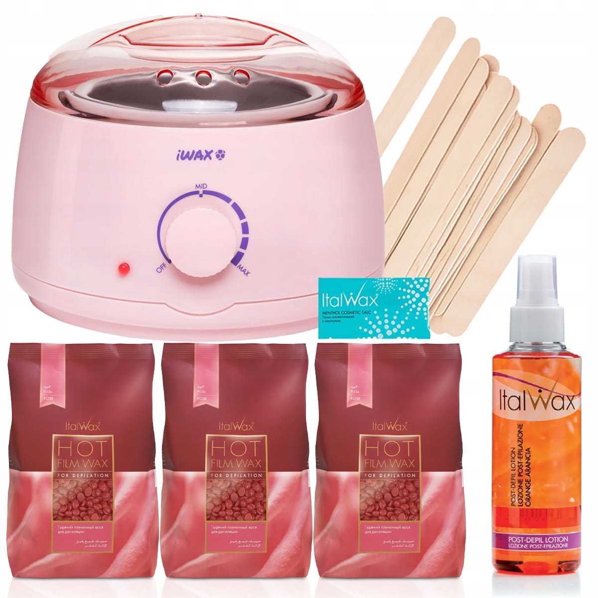 Zestaw startowy do depilacji woskiem 3 x ItalWax wosk w dropsach Rose 100ml + podgrzewacz + akcesoria